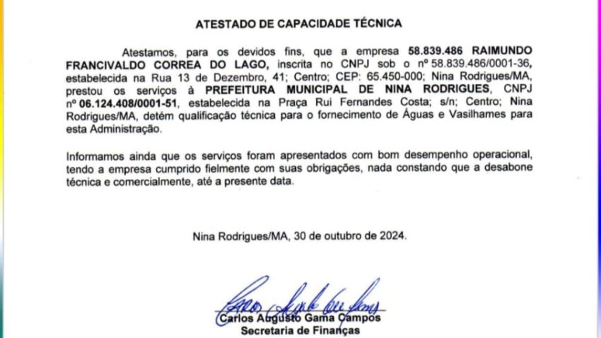 DENÚNCIA EM NINA RODRIGUES: SECRETÁRIO DE FINANÇAS É ACUSADO DE EMITIR ATESTADO FALSIFICADO.